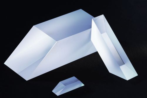 Optical prisms are versatile components used to bend, reflect, or displace light paths. Right angle prisms, for example, redirect light at 90°, producing inverted or reverted images depending on orientation. They can also serve as 90° reflectors or 180° retroreflectors using total internal reflection (TIR), providing near 100% reflectivity. Available in various substrates like N-BK7, UV Fused Silica, and Germanium, these prisms can be customized with coatings, including anti-reflection (AR) and aluminum, for optimized performance across UV, visible, and infrared applications. Additionally, dove prisms are ideal for rotating images by 180°.
