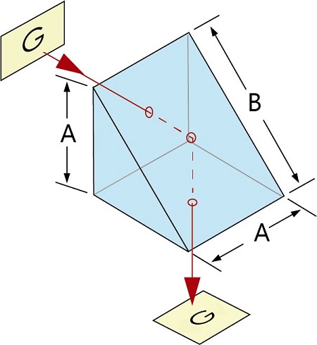 BK7 Right angle prisms are used to bend image paths or direct light at 90°. These produce a left handed image, and depending on the orientation, the image may be inverted or reverted. Right angle prisms are also be used in combination for image/beam displacement. Our P11 range of Right Angle Prisms are made from N-BK7 for use in various visible light applications, with coatings also available for the NIR region